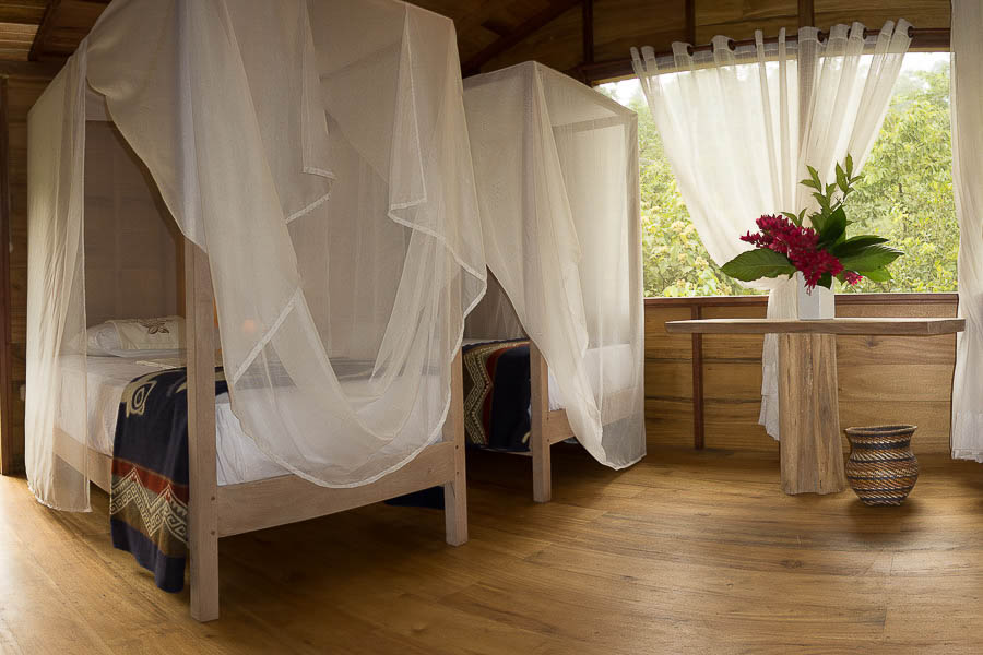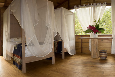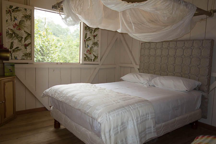 Notre cuisine et salle à manger ouverte sur la nature vous proposent une cuisine simple aux saveurs locales avec quelques plats typiques comme le cebiche de palmito, des poissons grillés accompagnés de bananes plantain et de manioc sans oublier les desserts comme la mousse de chocolat d’Esmeraldas ou la tarte aux citrons mandarine de notre Finca. C’est la pièce où nous nous retrouvons aussi pour échanger les observations et rencontres de la journée. Jus de fruits frais, vins et bières artisanales vous sont aussi proposés pour accompagner les repas.