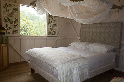 La Quinta de Goulaine est une forêt tropicale intacte de 50 hectares à 460mt d’altitude, nous avons réaménagé notre maison en bois, construit un grand bungalow pour recevoir nos hôtes.